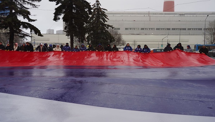 В Казани представители «Молодой Гвардии», студенты, школьники и активисты общественных организаций развернули российский флаг размером 60 на 40 метров.