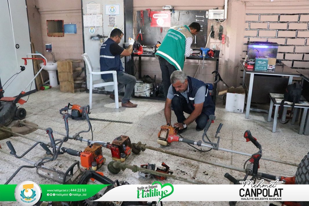 Şanlıurfa’da bir ilk olan atölye ile önceki yıllarda şehir dışına gönderilen iş makinalarının bakım ve onarımı artık belediye bünyesinde yapılıyor. Yemyeşil bir Haliliye sloganıyla park ve bahçelerde kullanılan çim biçme traktörü, el biçme makinası, çapa makinası, kesme makinası ve sahada kullanılan motosikletlerin yıllık bakım ve onarımı ustalar tarafından bu atölyede yapılarak, belediye bütçesinden yıllık tasarruf sağlanıyor. Periyodik olarak araç bakım ve onarımlarının yapıldığı atölye ile büyük tasarruf sağlandığını ifade eden Belediye Başkanı Mehmet Canpolat, “Haliliye’mizde, Şanlıurfa’mızda tasarrufa önem veriyoruz. Çevre Koruma ve Kontrol Müdürlüğümüz bünyesinde hizmete sunduğumuz atölye ile sahada kullandığımız iş makinalarının bakım, onarım, tamiratı burada yapılıyor. Hem tasarruf tedbirleri hem de aynı zamanda hızlı ve seri bir şekilde vatandaşlarımızın ihtiyaçlarını daha hızlı çözebilmek adına atölyemizde hummalı bir çalışma devam ediyor. Müdürlüğe bağlı ekiplerimiz, diğer ekiplerimiz gibi aralıksız çalışmalarını sürdürüyor. Daha yaşanabilir parklar, daha güzel parklar hedefiyle Haliliye Belediyesi olarak var gücümüzle çalışmaya devam ediyoruz” dedi.