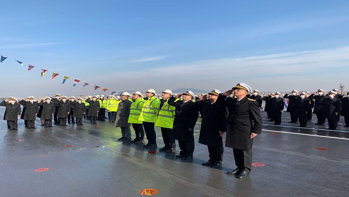 Deniz Kuvvetlerimizin En Büyük Gemisi Olacak Olan LHD ANADOLU’ya Törenle Türk Bayrağı Çekildi