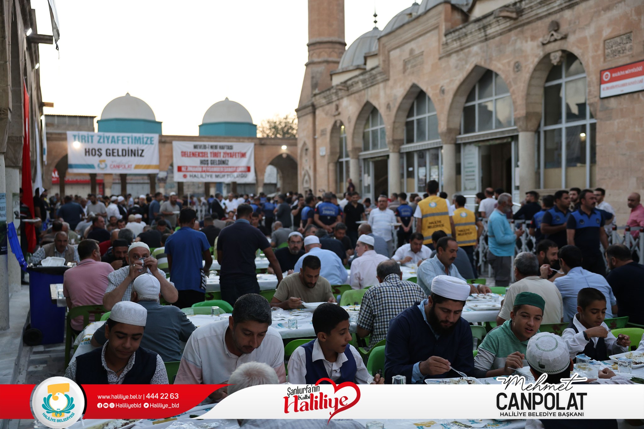 Haliliye Belediyesi tarafından Mevlid-i Nebi Haftası nedeniyle Hazreti İbrahim Peygamber Camiinde düzenlenen programla binlerce vatandaşa tirit ikram edildi. Belediye Başkanı Mehmet Canpolat, “Her yıl geleneksel olarak burada yaklaşık 10 bin kişilik tirit ikramında bulunuyoruz. Namazda buluşuyoruz, dualarda buluşuyoruz” dedi.
