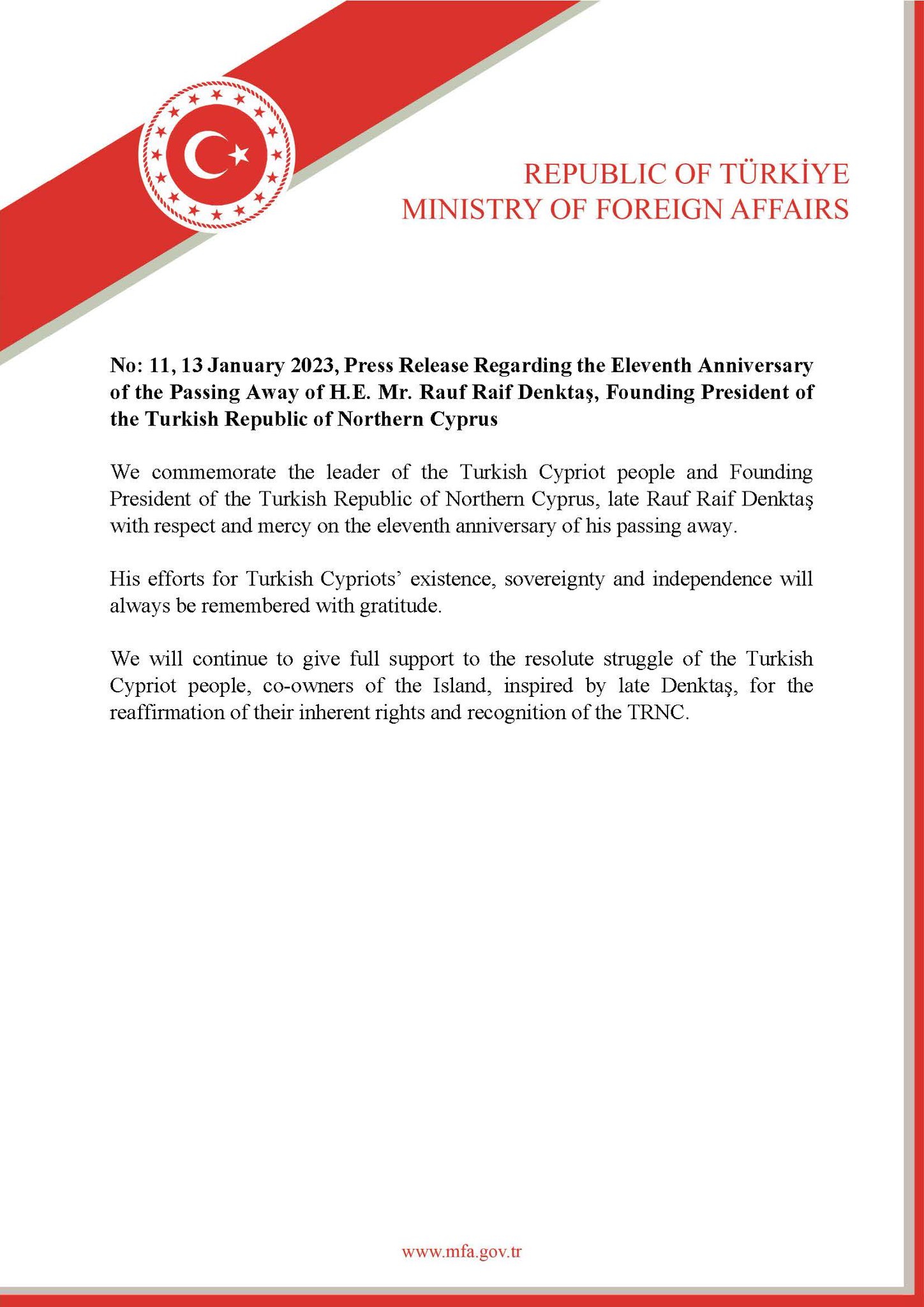 Press Release Regarding the Eleventh Anniversary of the Passing Away of H.E. Mr. Rauf Raif Denktaş, Founding President of the Turkish Republic of Northern Cyprus https://t.co/kLrDEcTDLD pic.twitter.com/uWaJWAFR2z
