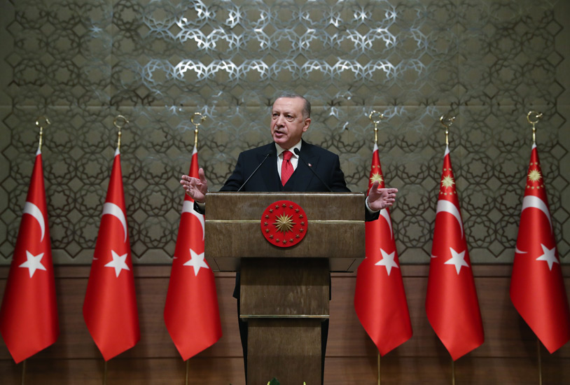 Sanat teorilerinin çöktüğü, sanat tanımlarının başkalaştığı, sanat ortamının değişime uğradığı, sanat hırsızlıklarının yüzlere vurulduğu bir çağda yaşandığını anlatan Cumhurbaşkanı Erdoğan, sözlerine şöyle devam etti: “İşte bu çağda ülkemiz, dünyaya yalnızca yeni eserler sunmakla kalmayacak, geleceğin sanat kuramlarının payandalarını da temellendirecektir. Sanatçılarımız bu anlayışla hareket ettikçe, şairin ‘O mahiler ki derya içredir deryayı bilmezler’ hükmü geçerliliğini yitirecektir. Biz işte o sanatçıyı bekliyoruz. Beklediğimiz o sanatçı, kimliğiyle birlikte deryasını bilecektir, önce kendisi olacaktır, davasını sanatıyla ifade edecektir. Beklediğimiz o sanatçı, vaktini ve enerjisini dünyanın iyiliği adına ürettiği eserleriyle gösterecek, sanatını icra ederken dünyadaki akranlarını geride bırakacaktır. Beklediğimiz o sanatçı, zulme ve adaletsizliğe karşı bir çığlık olarak yaptığı şarkısıyla dünya müzik listelerini sallayacak, müzikteki evrensel anlayışları değiştirecektir. Beklediğimiz o sanatçı, slogan atarak kendini göstermeye çalışmayacak, başarılarıyla dünyanın en muhteşem salonlarında ayakta alkışlanacaktır. Beklediğimiz o sanatçı, ortaya koyduğu bir sanat üslubuyla veya icat ettiği bir sanat formuyla adını sanat tarihine yazdıracaktır. Beklediğimiz o sanatçı, ürettiklerinden dolayı parmakla gösterilecek, üslubuyla herkesi peşinden sürükleyecektir. Beklediğimiz o sanatçı, gündemin peşinden savrulmak yerine dünyaya gündem verecek, performansıyla rekorlar kitabına girecek, tarzıyla sanat modası oluşturacaktır. Beklediğimiz o sanatçı, ait olduğu milleti hor görüp sürekli şikâyet etmek yerine kendi sanatını üretecektir. Beklediğimiz o sanatçı, muhalefetini sosyal medya hesabından savurduğu siyasi polemiklerle değil, kanatlanıp uçurduğu sanatıyla gösterecektir.”