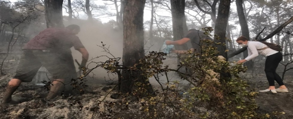 Ada sakinleri, itfaiye ekiplerine de yardım ederek yangının kontrol altına alınmasında büyük rol oynadı.